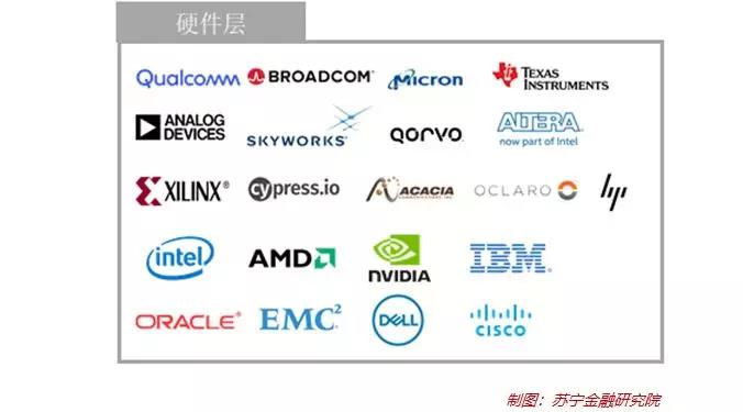 應(yīng)用層是指面向用戶的應(yīng)用服務(wù),比如國內(nèi)的微信、支付寶、蘇寧易購等,又比如國外的谷歌、微軟、Twitter、Facebook、Instagram等。由于在應(yīng)用層的美國企業(yè)對于國內(nèi)無論是市場占有率還是影響力都較為有限,而且又非不可替代,這里就不一一列舉了。