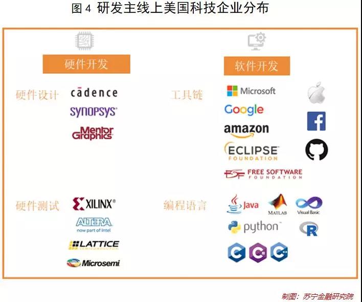 如果僅僅只是分析美國科技企業(yè)在應(yīng)用主線方面的分布而不涵蓋研發(fā)主線,那么,對其實際分布的廣度和深度的認(rèn)知,將會是不完整的。